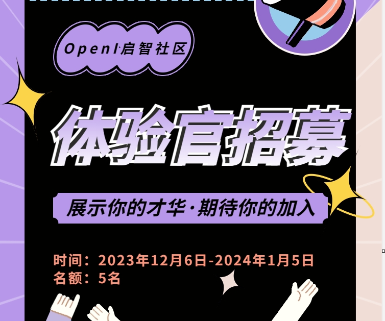 近期,我们经常听到身边的小伙伴们表达成为OpenI启智社区体验官的强烈意愿。这让我们深刻感受到大家对于与志同道合的伙伴们共建社区开源生态,以及为OpenI启智社区的发展贡献自己的一