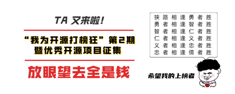 来啦来啦来啦! 谁来啦? 当然是第二期“我为开源打榜狂”活动,在各位小伙伴们的呼唤中,将在7月18日再次火热袭来! 在第一期活动结束的一个月时间里,我们不仅
