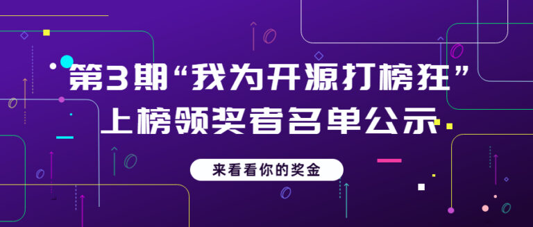 于2022年9月27日至10月30日举办的”我为开源打榜狂“第3期活动领奖者名单公示如下,公示期自11月7日至11月13日,请上榜者自行确认。公示期结束,社