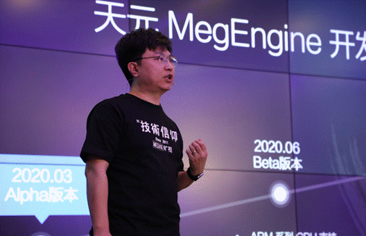 发布会上,旷视联合创始人兼CTO唐文斌正式宣布将MegEngine的代码开源,并指出这是一套训练推理一体化、动静态合一的工业级深度学习框架,中文名字叫做天元。