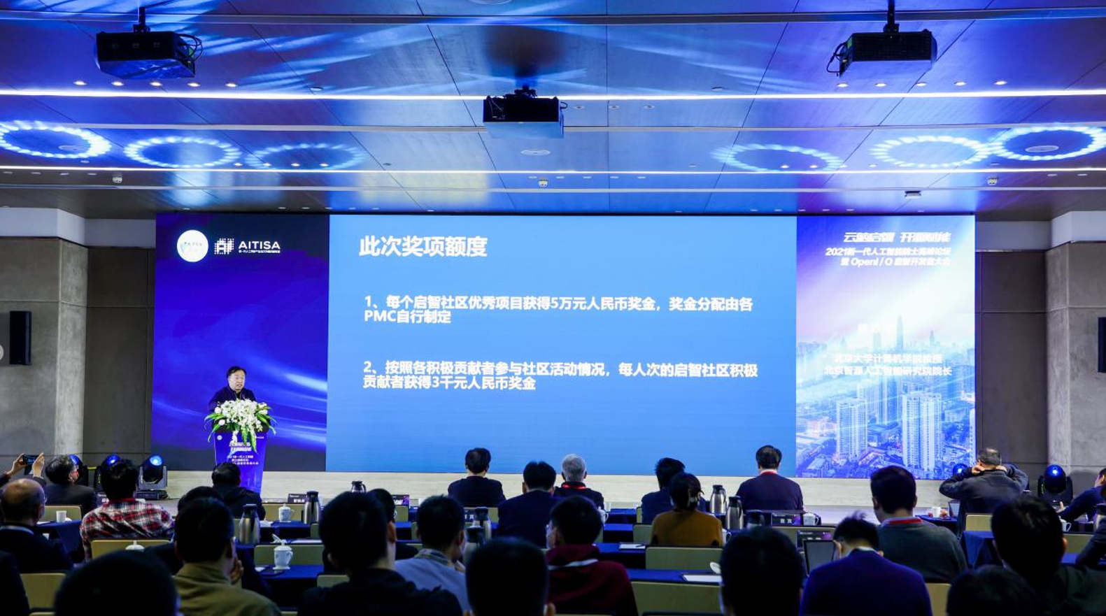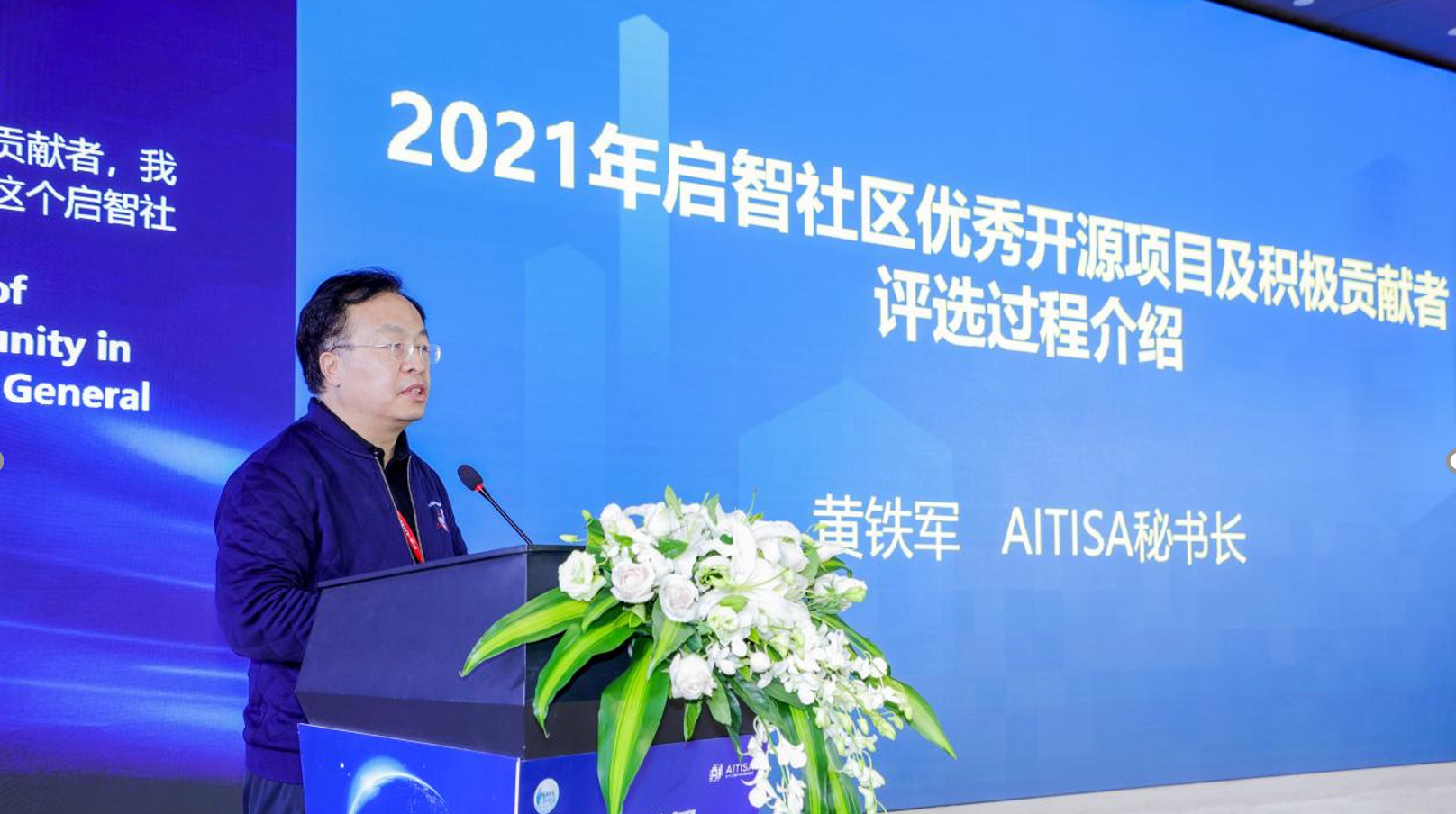 AITISA 秘书长、启智社区技术委员会主席黄铁军教授在评选情况介绍时表示,“启智社区专门有优秀开发者激励管理办法,奖励资金既有新一代人工智能重大科技项目的支持,还有鹏城实验室配套资金的激励”。他介绍到,评选以项目的情况介绍、活跃情况以及开发者材料等为基础依据,通过与各个项目团队进行多次沟通,核实数据等工作后严格评审确定下来。针对评估所用的维度和参数,综合考虑了社区影响力、项目成熟度、开发活跃度、项目健康度、项目发展趋势等多种因素,希望更全面地反映开发者们在社区的贡献。