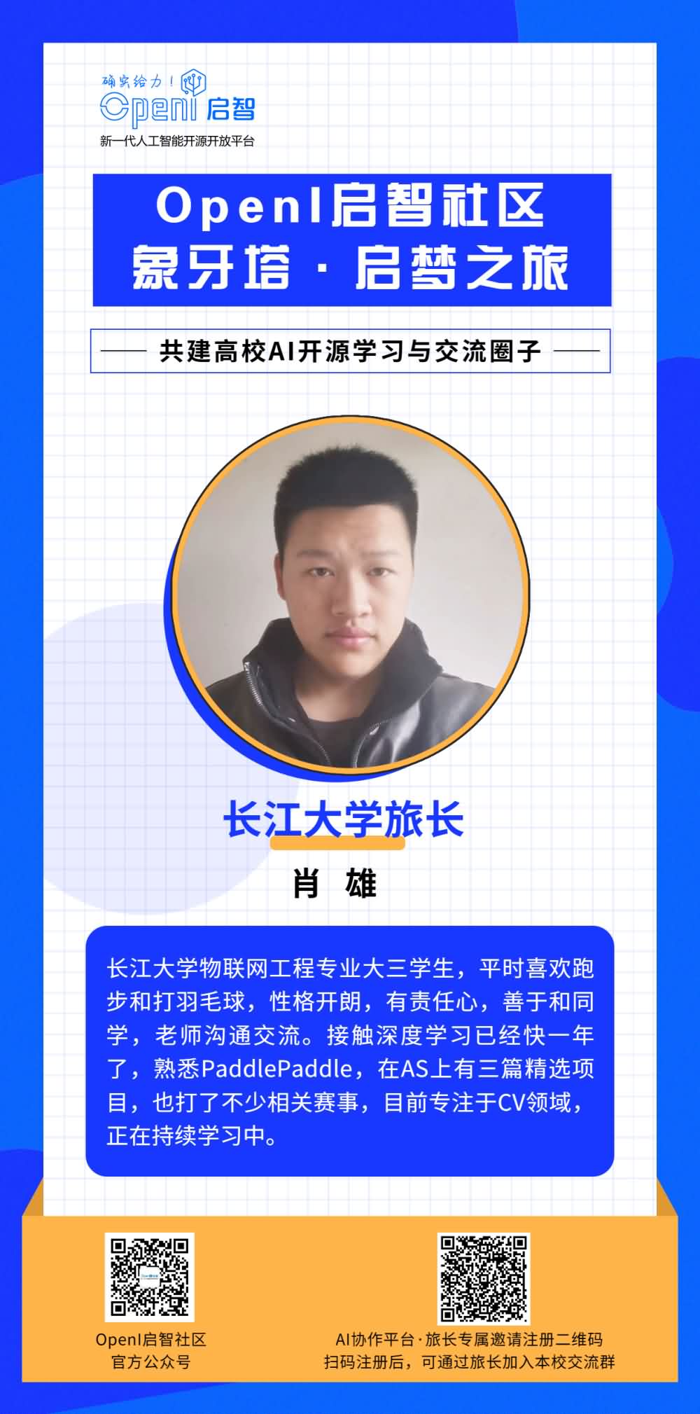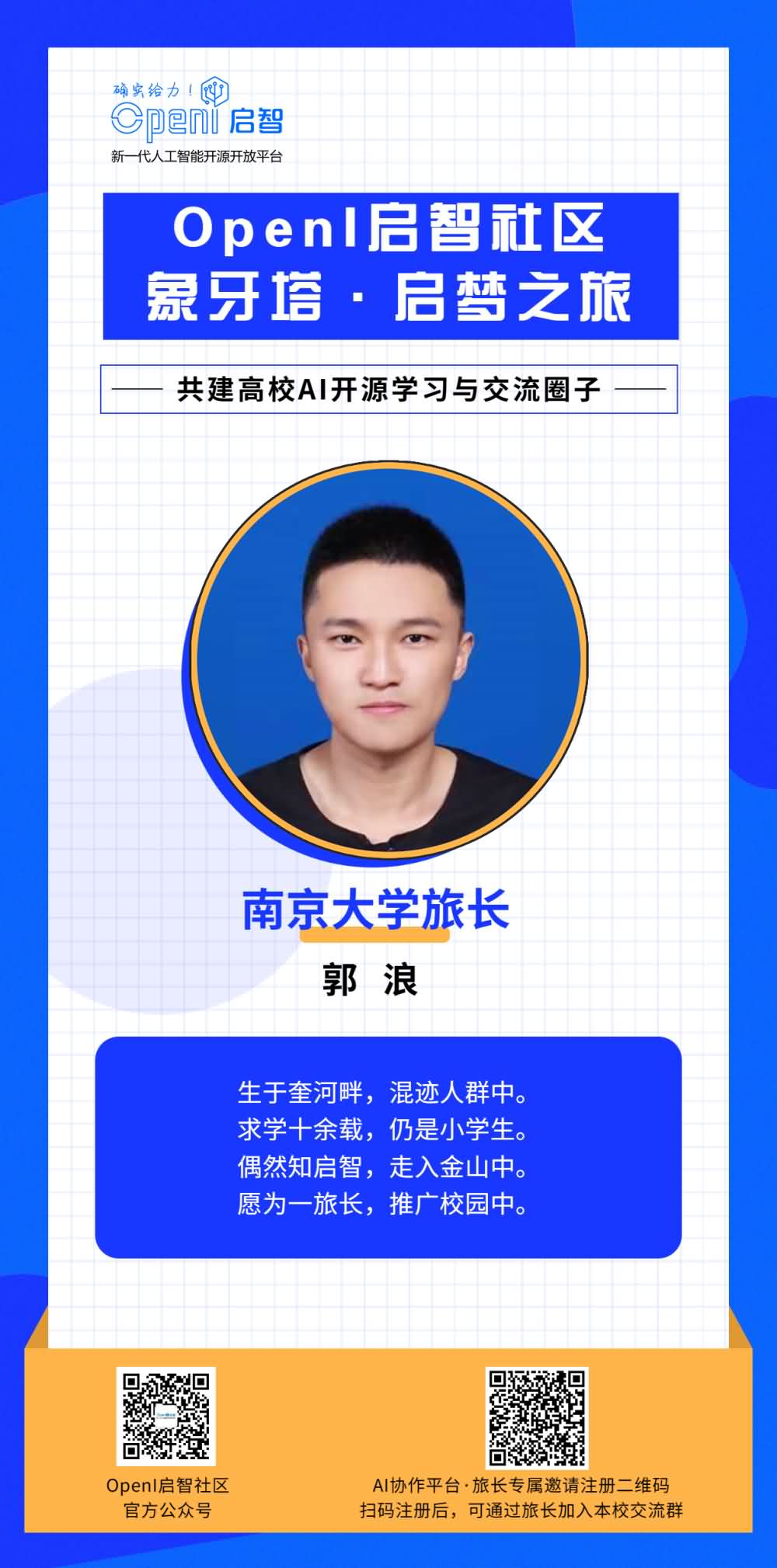 如果你也想成为一名旅长,有意帮助OpenI与本校同学之间建立更多的联系,欢迎通过下方海报上的二维码进行申报。