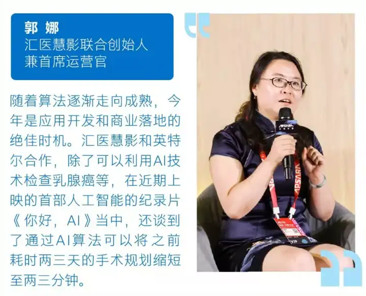 汇医慧影联合创始人兼首席运营官 郭娜表示:” 随着算法逐渐走向成熟,今年是应用开发和商业落地的绝佳时机。“