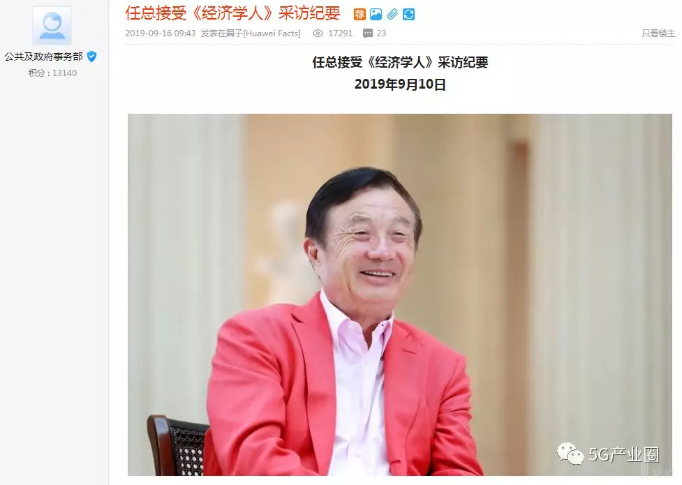 图片来自“亿欧网”9月16日,华为“心声社区”刊登了该公司创始人任正非于10日接受《经济学人》的采访纪要。