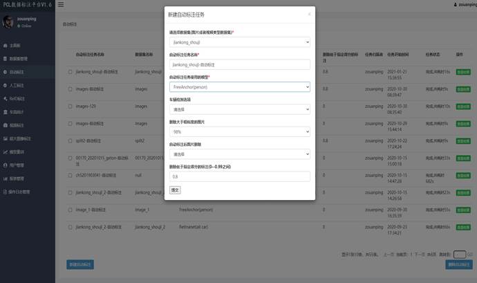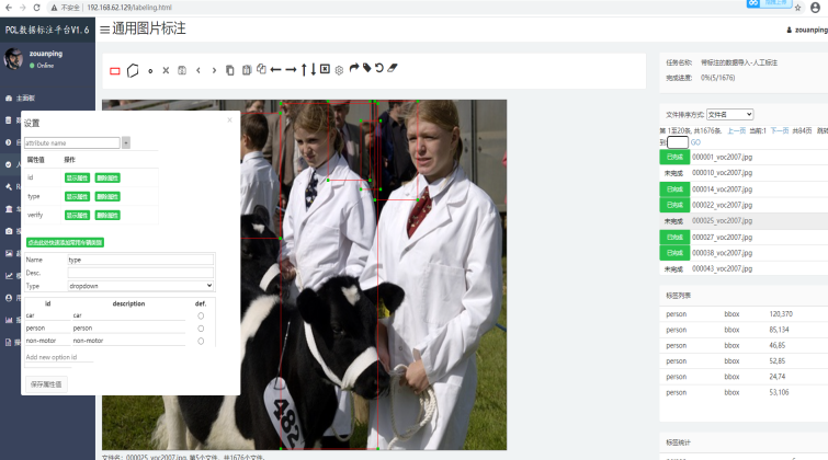 PLabel系统集成了大量数据标注相关功能,包括数据管理、自动标注、人工标注、ReID标注、车流统计、视频标注、医疗CT标注、超大图像标注等。目前还集成视频抽帧、目标检测、视频跟踪、ReID分类、人脸检测等系列算法,支持用户自行增加目标检测算法,实现对图像、视频的自动标注,并可以对自动算法的结果进行人工标注修订,标注结果支持COCO及VOC格式。