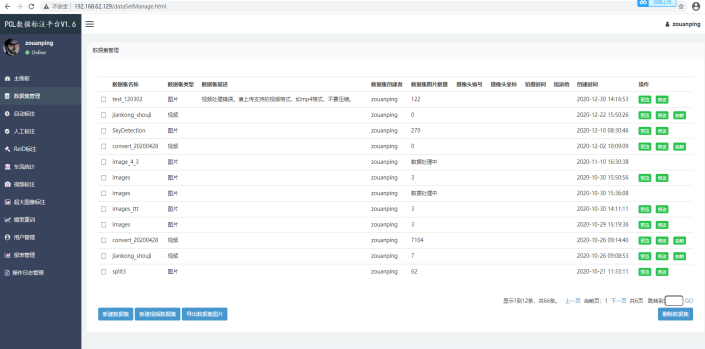 数据集管理界面