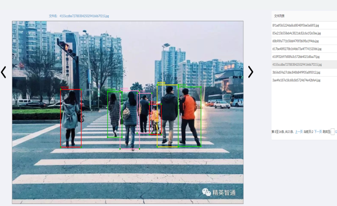 用户可以选择集成好的算法对图片进行目标检测,支持对视频、图片进行自动标注,标注结果可在线查看。目前系统使用的自动标注算法基于mmdetection框架,当前自带了人、车检测,在各种场景下都能支持,且性能较高。自动标注算法模型支持扩展功能,用户可以根据需求集成自己定制的算法模型。