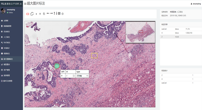 1、支持20–10000M的大图片标注,目前支持tiff及svs格式。