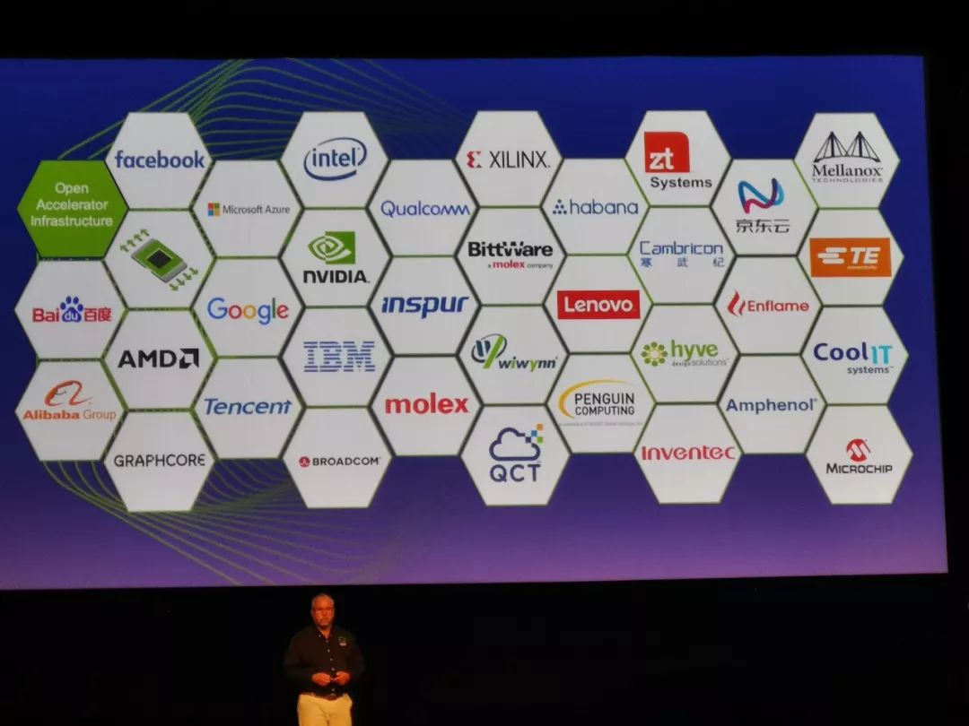OCP 开放计算项目,是由 Facebook 携手英特尔、Rackspace 等公司于2011年成立的一个非营利组织,也是全球云计算基础硬件技术领域覆盖面最广、最有影响力的开源组织。在今年3月美国 OCP 全球峰会上,百度联合 Facebook 和微软发布了 OAM(OCP Accelerator Module)标准,该标准制定了 AI 硬件加速模块的尺寸、供电、高速互联接口等规范,之后主导发起将 OAM 项目升级为 OAI,该标准用于指导 AI 硬件加速模块和系统设计,它集合定义了 AI 硬件加速模块本身、主板、互联拓扑、机箱、供电、散热以及系统管理等系列设计规范。