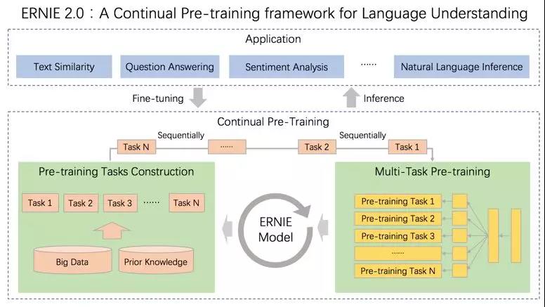 这些任务通过多任务学习对模型进行训练更新,每当引入新任务时,该框架可在学习该任务的同时,不遗忘之前学到过的信息。这也意味着,该框架可以通过持续构建训练包含词法、句法、语义等预训练任务,持续提升模型效果。
