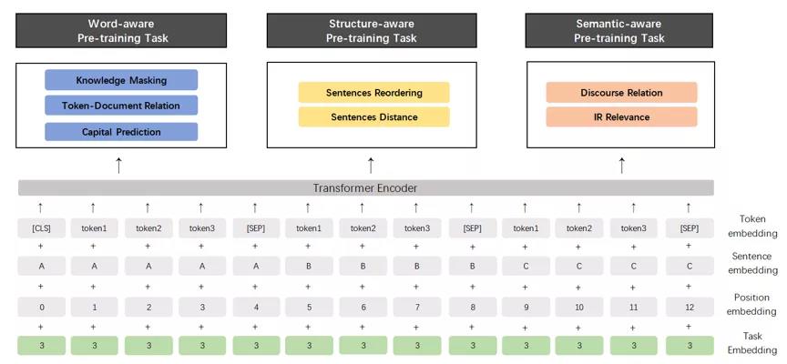 百度发现,之前的工作主要通过词或句子的共现信号,构建语言模型任务进行模型预训练。例如,BERT 通过掩码语言模型和下一句预测任务进行预训练。XLNet 构建了全排列的语言模型,并通过自回归的方式进行预训练。