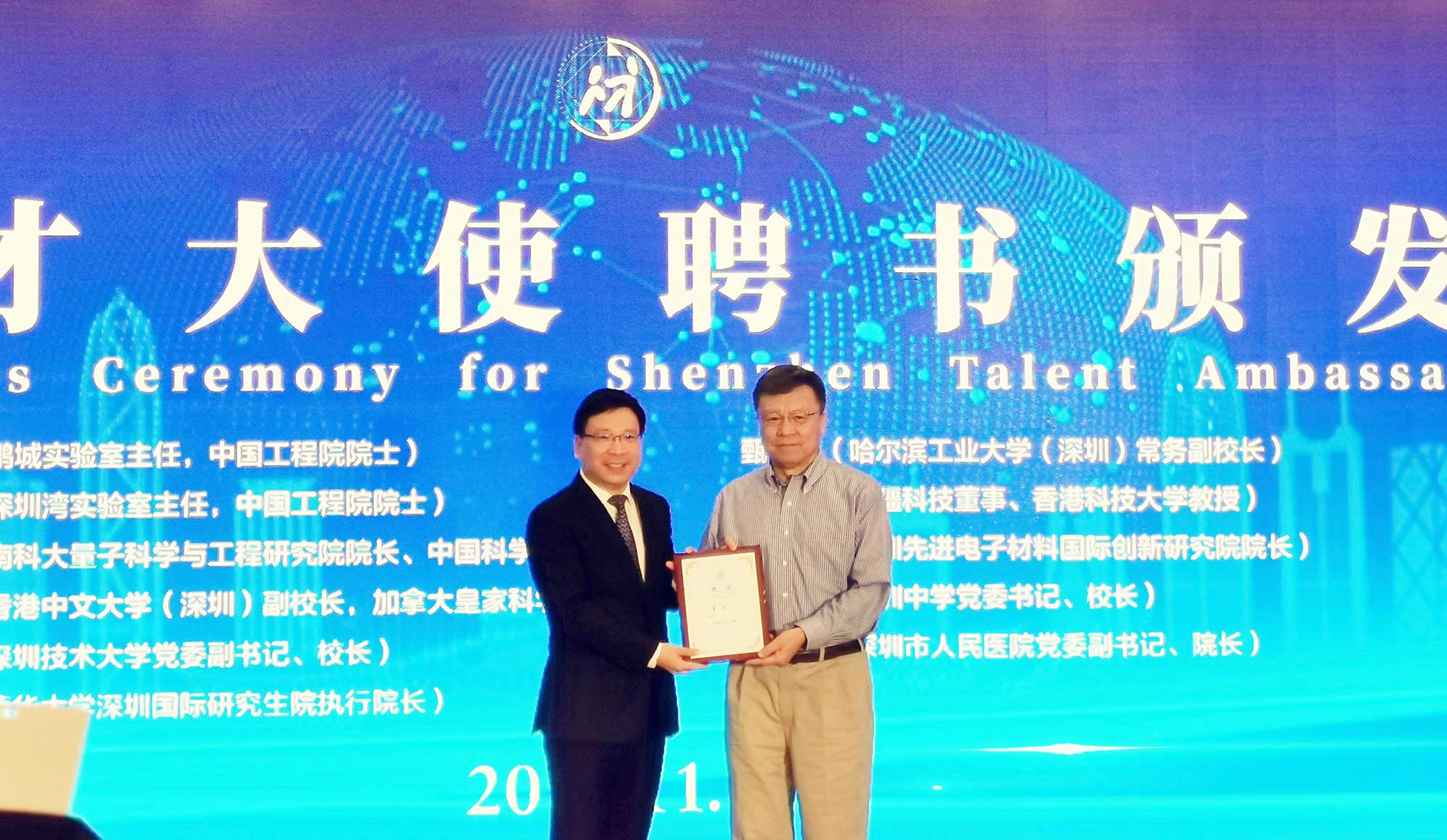 为强化以才引才的导向,发挥人才在引才荐才中的独特作用,提升全市招贤纳才质量,2017年市委市政府聘任首批人才大使。今年,鹏城实验室主任高文院士荣获第二批“深圳人才大使”称号,获此称号的还有:詹启敏、阮双琛、高虹、甄良、俞大鹏、罗智泉、李泽湘、孙蓉、朱华伟、邱晨等11位高校、科研机构及产业界代表。
