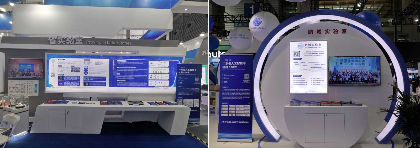 本届高交会日期为11月13号到17号,鹏城实验室共设两处展位,分别位于1号馆深圳市高层次人才联谊会团展区和9号馆广东团展区。